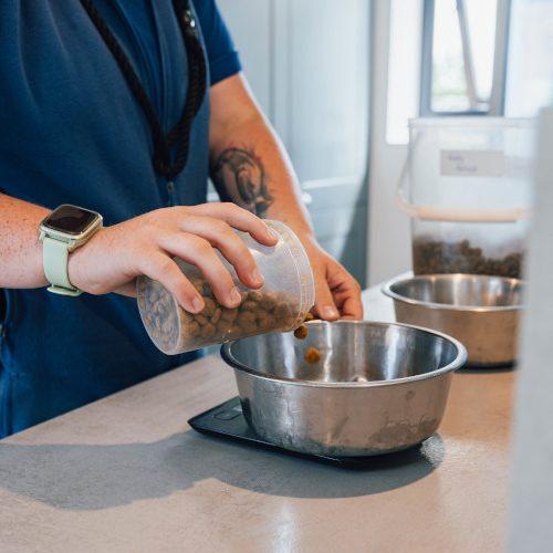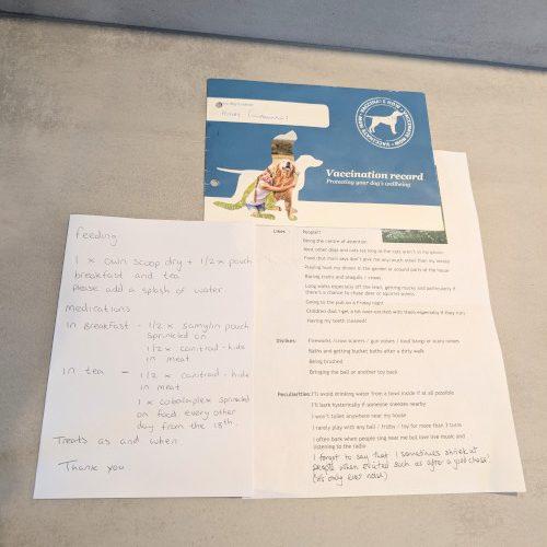 1. Enough food for their stay, with their own scoop or better still bagged into meals.